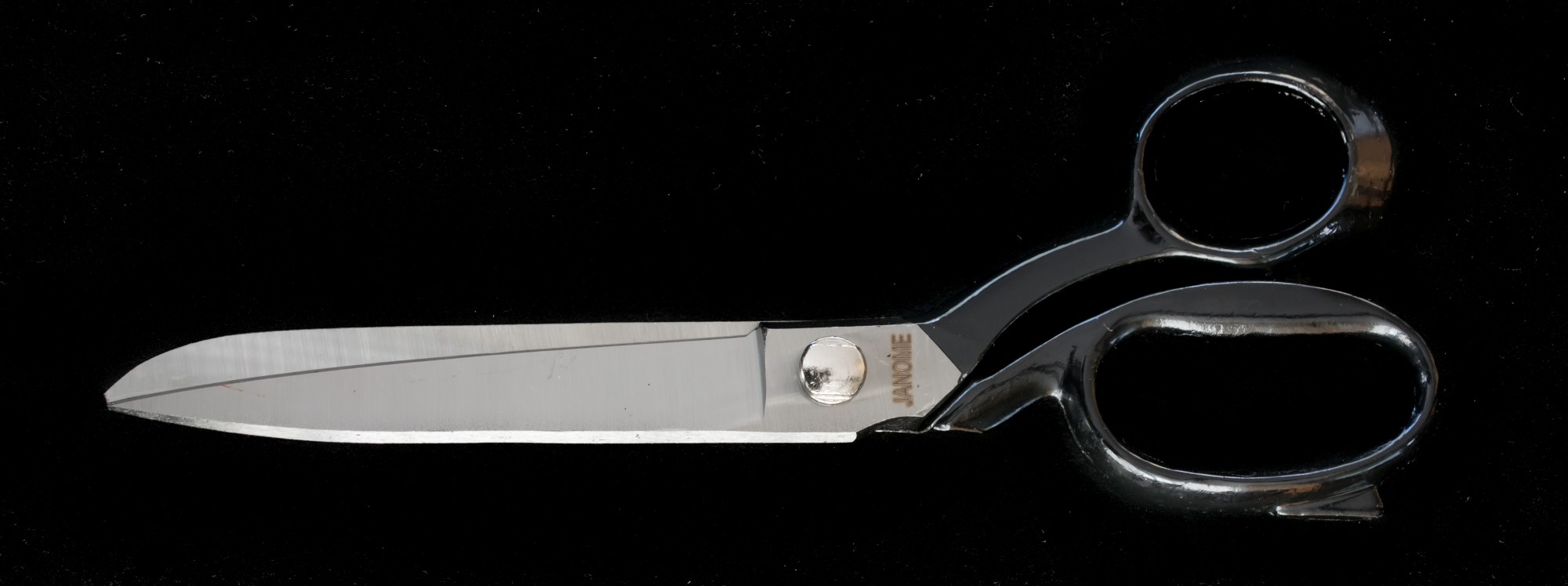 9" Dressmaking scissors / cutting out shears, black handles and glazed blades. Adjustable centre pivot.