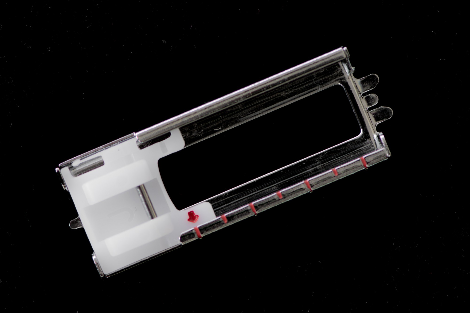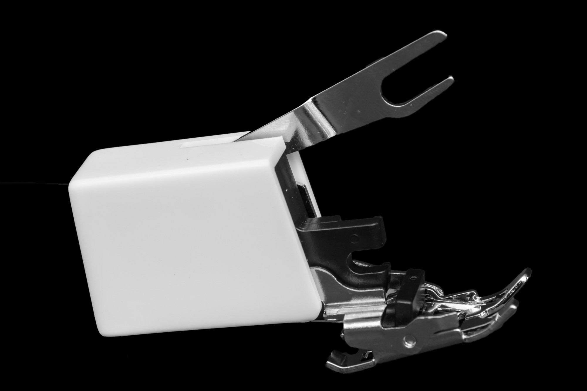 Snap on straight stitch foot, excellent for fine or delicate fabrics.
