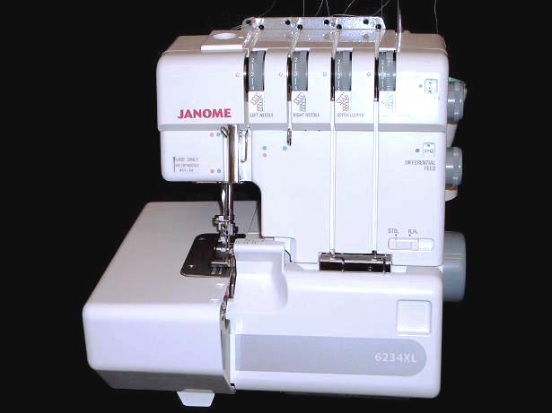 The Janome 6234XL comes pre-threaded and has a built-in rolled hem feature (no plate change) for a professional finish. The cutting width is adjustable from 2.0 to 5.7 mm. The differential feed prevents puckering and stretching, and can be used for fun special effects and the upper knife can be deactivated for decorative sewing. The 6234XL uses standard sewing machine needles so there's no need to stock different needle from what you use on your sewing machine.