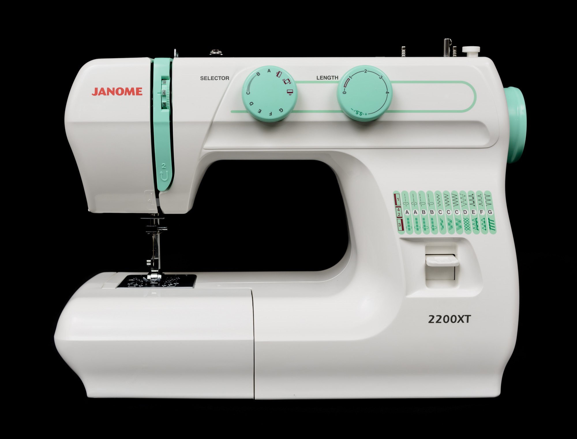 Janome 2200XT offers 22 stitch functions including overlocking and buttonhole. The Janome 2200 is an excellent utility stitch sewing machine at a great price. Easy stitch selection and a great stitch package make the 2200 an excellent choice. This model also features LED lighting for low energy consumption and has a drop feed system for freehand work including darning and embroidary, 2 year warranty.